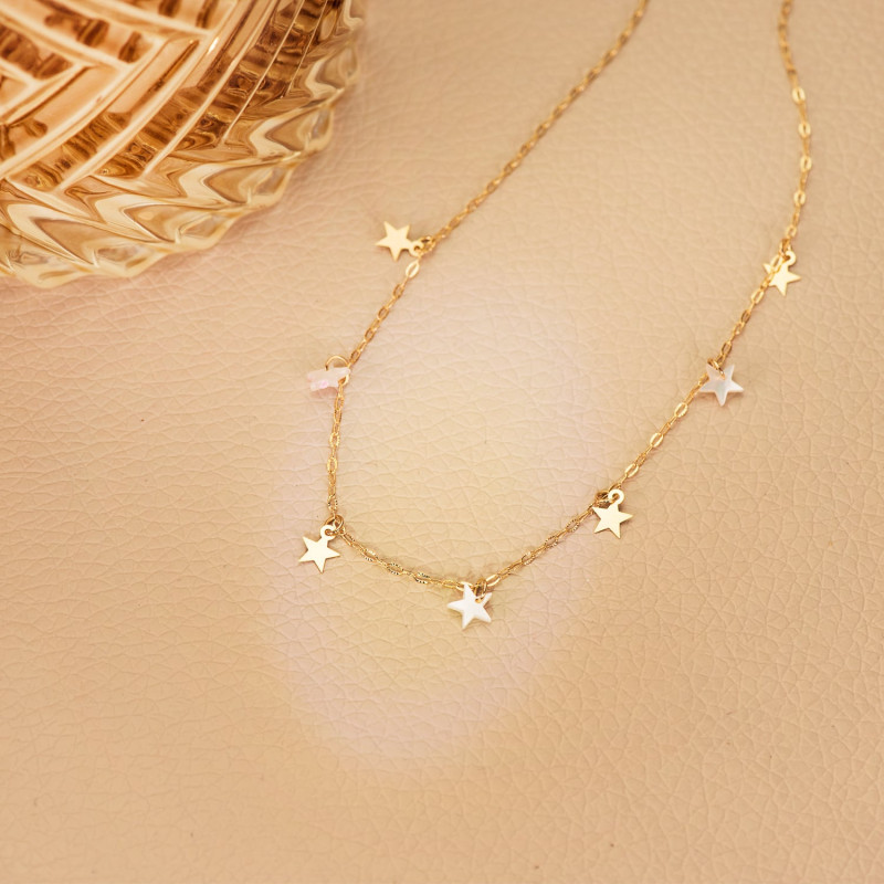Añadir Añadir a la cesta 18K GARGANTILLA ORO AMARILLO ESTRELLAS LISAS Y NACAR 5.5 MM CADENA FORZADA 45CM 539,24 €
