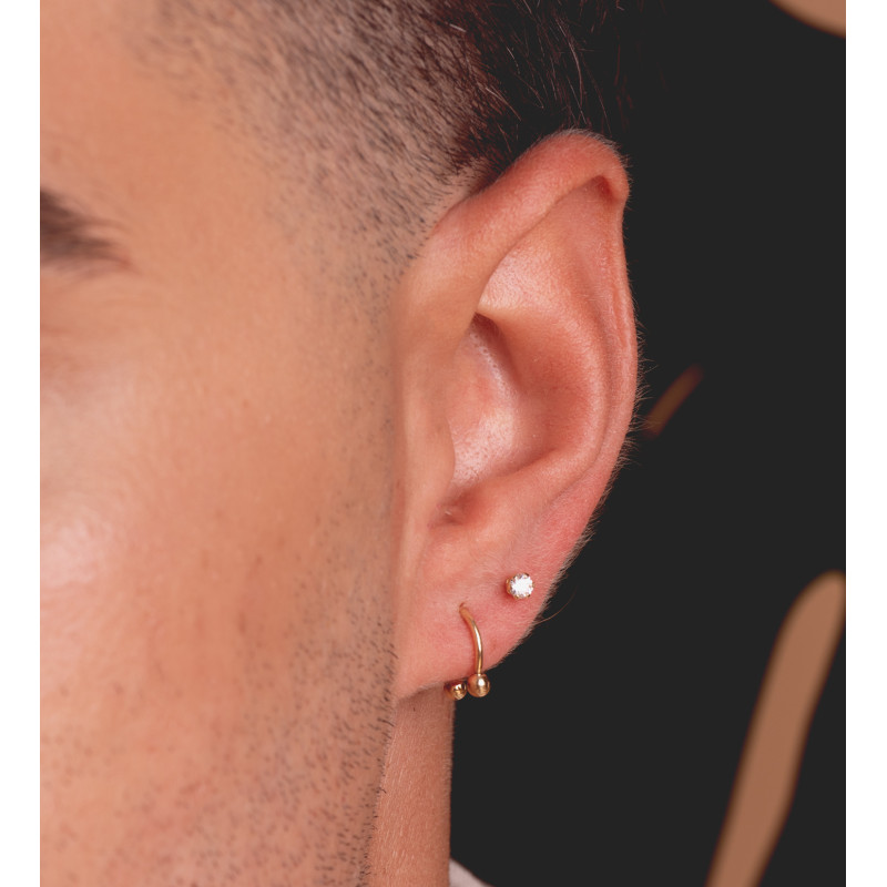 18K PIERCING DE OREJA ORO AMARILLO CIRCONITA ROSA CON GARRAS 3,5 MM. GRUESO BARRA 1MM. CIERRE TUERCA