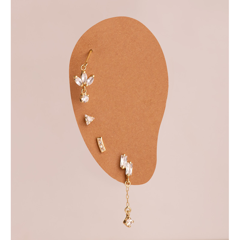 18K PIERCING DE OREJA ORO AMARILLO CORAZON 3X3 MM CON CIRCONITA. GRUESO BARRA 1.20 MM. CIERRE TUERCA